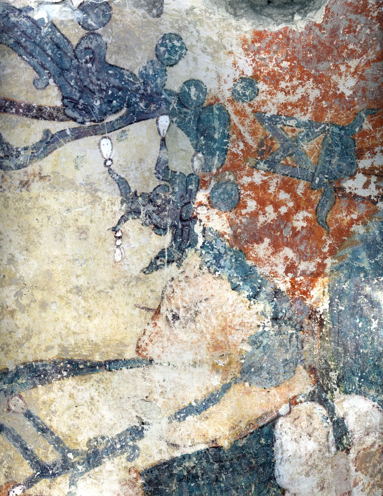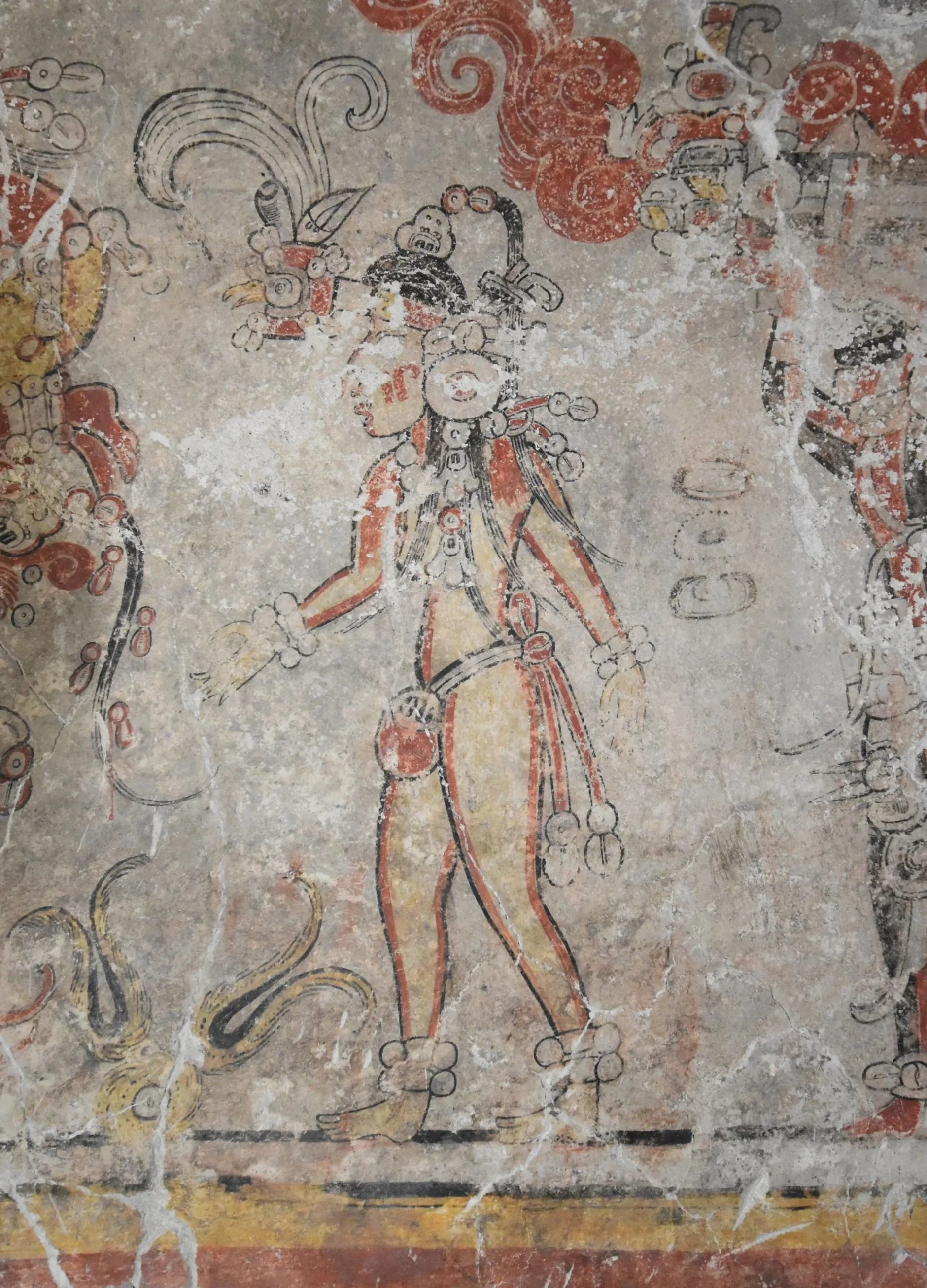 San Bartolo, Sub-1A chamber, north wall, detail of the Maize God Queen (ca. 100BCE), photo by H. Hurst.